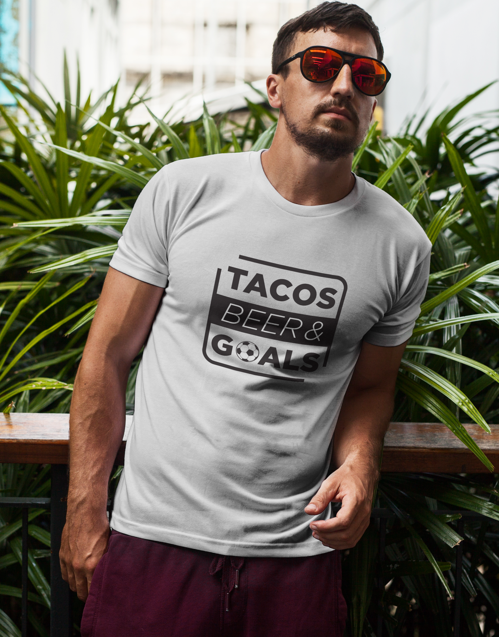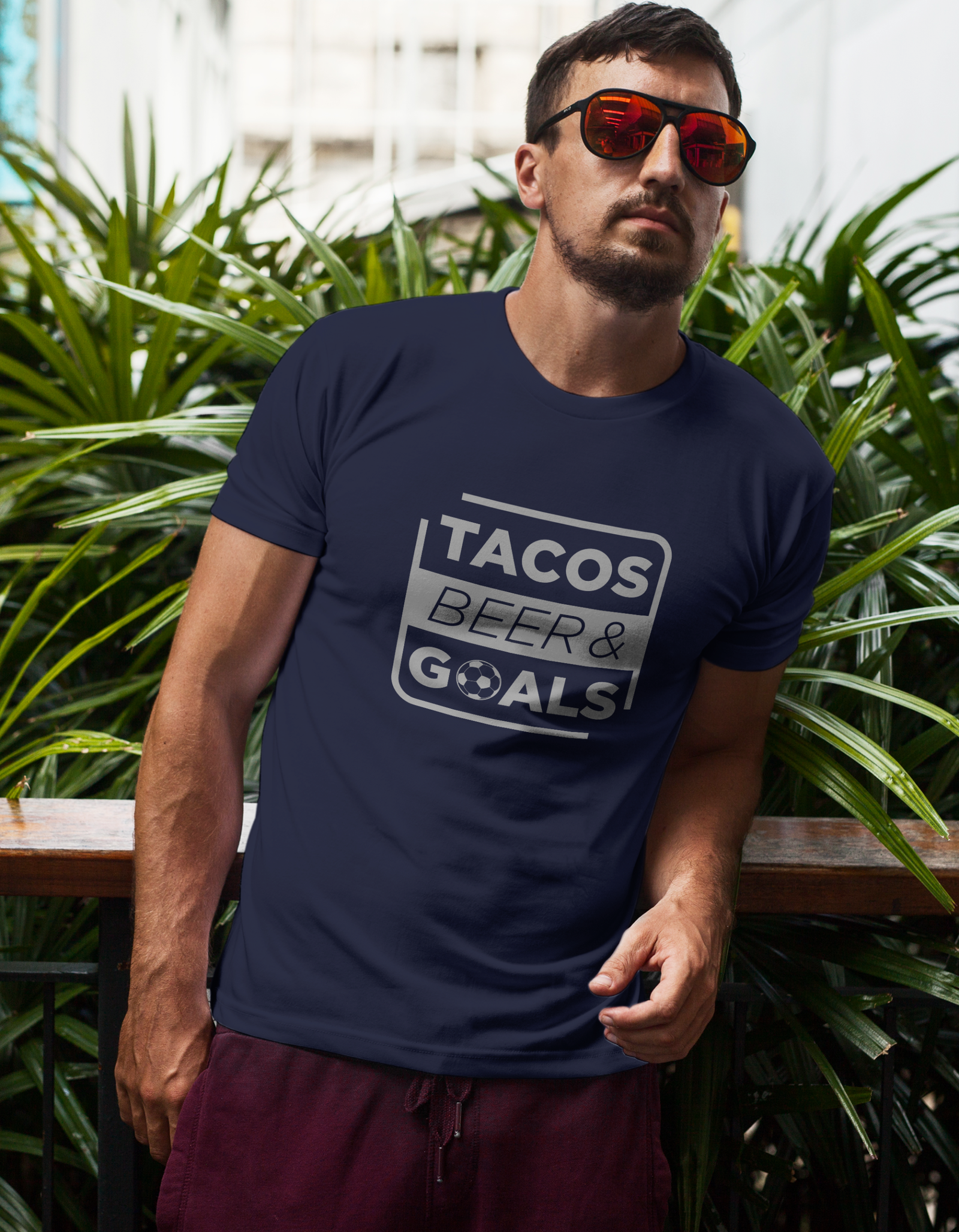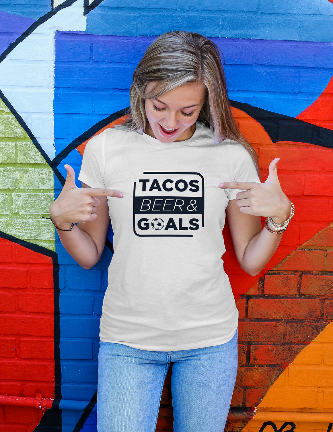 You're viewing: TACOS · BEER · GOALS T-SHIRT $49.95